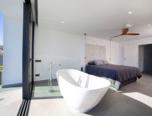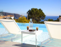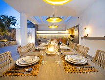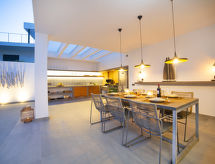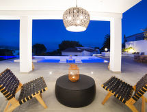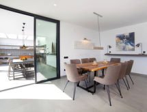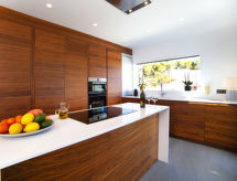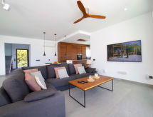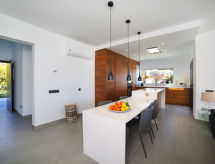 "Saona", 5 rom villa 320 m2 på 2 etasjer. Romlig og lys, smakfullt og stilfullt møbler: stue/spisestue med, spisebord, TV, flatskjerms TV, air-conditioning og varmluft oppvarming. Utgang til terrassen, til badebassenget. 1 rom med 2 senger (90 cm lengde 190 cm), air-conditioning og varmluft oppvarming. 1 rom med, 1 dobbeltseng (150 cm, lengde 200 cm), dusj/WC, TV, air-conditioning og varmluft oppvarming. Utgang til terrassen. Åpent kjøkken (ovn, oppvaskmaskin, 4 induksjonskomfyr, mikrobølgeovn, frys, elektrisk kaffemaskin, kjøkkenøy) med bar. Dusj/WC. Varmekabler i gulvet (ekstra). Oppvarming kun tilgjengelig fra 01.11. til 30.04. øverste etasje: (trapp uten gelender), 1 rom med, 1 dobbeltseng (150 cm, lengde 200 cm), dusj/WC, TV, air-conditioning, vifte og varmluft oppvarming. 1 rom med panoramavindu Garderobe med, 1 dobbeltseng (150 cm, lengde 200 cm), bad/dusj/WC, TV, flatskjerms TV, air-conditioning og varmluft oppvarming. Utgang til loggiaen. Stor terrasse, lysthus. Terrassemøbler, grill, liggestoler, overbygd balkong. Panoramautsikt av havet og landskapet. Fasiliteter: vaskemaskin, tørketrommel, strykejern, hårføner. Internett (trådløs LAN [WLAN], gratis). Parkeringsplass (inngjerdet, 2 Biler). Vennligst merk: velegnet for familier. Røykfri leilighet. AT-474864-A