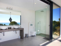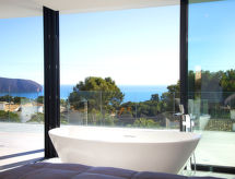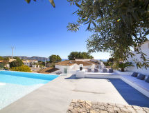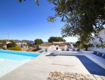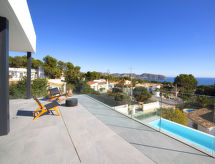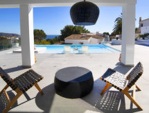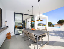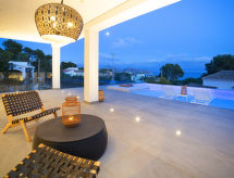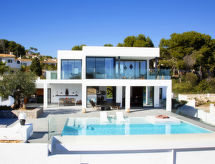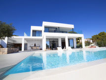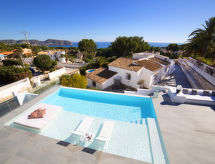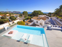 Moravit 3 km fra Moraira: Meget moderne villa "Saona", med 2 etasjer, bygget i 2018. I utkanten, 3 km fra sentrum av Moraira, i distriktet Moravit, i en roligt, solrikt posisjon boligområde, 750 m fra sjøen, 950 m fra stranden. Privat: tomt 1'100 m2 (inngjerdet), vakker hage i flere nivåer, svømmebasseng kantete (5 x 9 m, dybde 30- 140 cm dyp, 01.01.-31.12.) med innebygde trapper. Utendørs dusj, terrasse, hagemøbler, grillplass. Oppvarming betales lokalt (01.11.-30.04.), oppvarming kun tilgjengelig fra 01.11. til 30.04.. Trapper (4 trinn) til hbrukt. Parkering (begrenset antall plasser). Butikk 1.1 km, daglivarehandel 1.1 km, supermarked 1.1 km, kjøpesenter 1.1 km, bakeri 1.1 km, café 1.1 km, ølservering 1.1 km, sandstrand "Moraria" 2.1 km, strand ved klipper "Cala L'Andrago", badebukt 950 m. Sporthavn 2.9 km, marina 2.9 km, golfbane(18 hull) 1.4 km, surfeskole 2.9 km, seileskole 2.9 km.