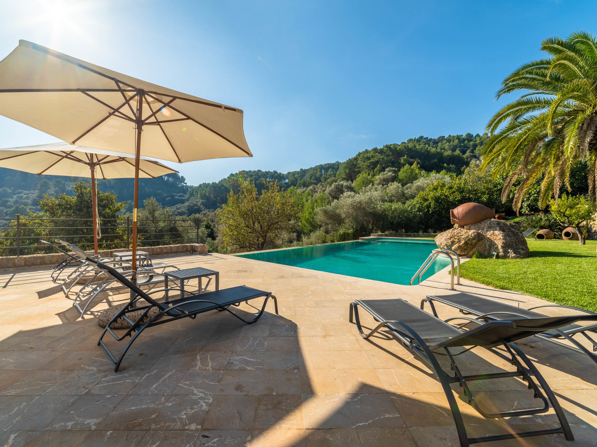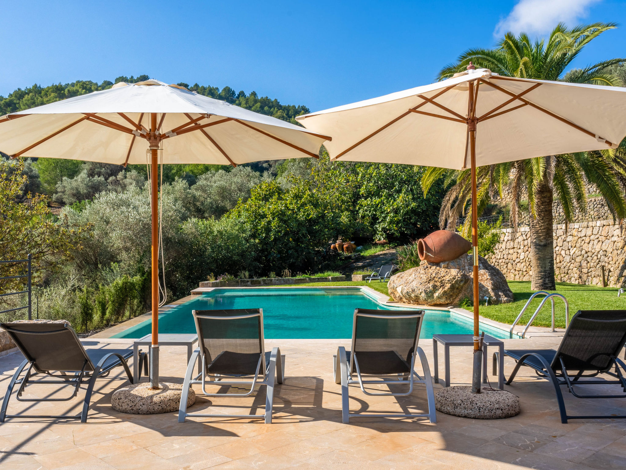 4.13. Hvis hage-/utemøbler (møbler) er inkludert i beskrivelsen, kan en hagestol ikke nødvendigvis tilbys for hver person. Dette gjelder også solsenger, som ofte er tilgjengelige i et begrenset antall. Av hygieniske årsaker tilbyr mange eiere ikke puter til solsenger. Solsenger og parasoller er bare tilgjengelig hvis de er nevnt i beskrivelsen av ferieboligen.