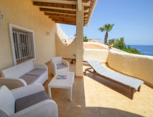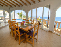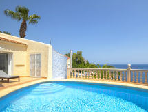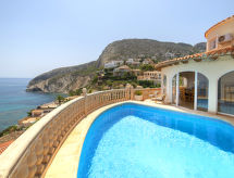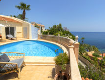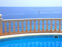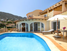 Fin villa "Acapulco", med 3 etasjer. I området 2.4 km fra sentrum av Calpe, i en roligt, solrikt posisjon boligområde, område med lite trafikk, 300 m fra sjøen, 300 m fra stranden. Privat: tomt 1'241 m2 (inngjerdet), vakker hage, svømmebasseng (8 x 5 m, dybde 50- 180 cm dyp, Sesongåpent: 01.Jan. - 31.Des.). Utendørs dusj, terrasse, grill, overdekket, parkering. Daglivarehandel 1.8 km, supermarked 1.8 km, restaurant, bar 350 m, sandstrand "Playa Puerto Blanco" 500 m, strand ved klipper 300 m. Sporthavn 5.2 km, marina 5.2 km, golfbane(9 hull) 14.2 km, tennis 350 m. Attraksjoner i nærheten: Aqualandia, Mundomar, Terra Mítica, Terra Natura, Benidorm Palace (Benidorm), Castillo de Guadalest. Eieren godtar ikke noen ungdomsgrupper.