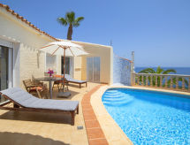 "Acapulco", 6 rom villa 220 m2 på 3 etasjer. Romlig og lys, komfortabelt og vakkert møbler: åpen stue/spisestue med, satelit-TV, digital TV, air-conditioning og varmluft oppvarming. Utgang til terrassen, til badebassenget. 1 rom med, 1 dobbeltseng (150 cm, lengde 190 cm), dusj/bidèt/WC, air-conditioning og varmluft oppvarming. 1 rom med, 1 dobbeltseng (150 cm, lengde 190 cm), air-conditioning og varmluft oppvarming. Utgang til terrassen, til badebassenget. 1 rom med (150 cm, lengde 190 cm), 1 dobbeltseng, air-conditioning og varmluft oppvarming. Åpent kjøkken (4 kokeplater, stekeovn, oppvaskmaskin, mikrobølgeovn, frys). Dusj/WC. øverste etasje: 1 rom med, 1 dobbeltseng (150 cm, lengde 190 cm), air-conditioning og varmluft oppvarming. Utgang til terrassen. Dusj/bidé/WC. Stor terrasse. Terrassemøbler, grill, liggestoler. Meget vakker panoramautsikt av havet og byen. Fasiliteter: vaskemaskin, strykejern, høy barnestol barneseng for barn opp til 2 år, hårføner. Internett (trådløs LAN [WLAN], gratis). Parkeringsplass (overdekt). Velegnet for familier. VT-484128-A